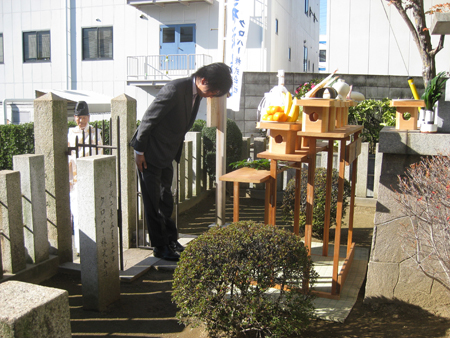 祝詞奏上。祝詞が奏上されるあいだ、起立して頭を下げます。