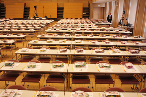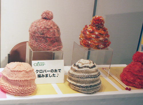 参加者が入られる前の会場です。ニット帽のキットがズラリです!