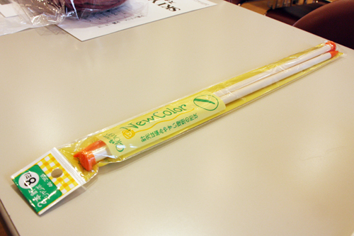 お一人に一組、クロバー「ニューカラー」2本針ジャンボ8mmが配られました。