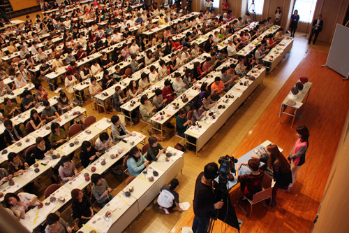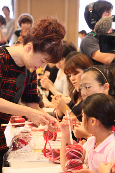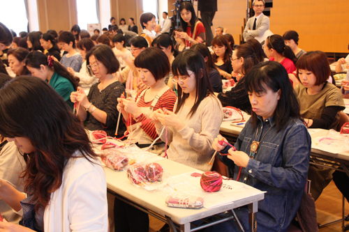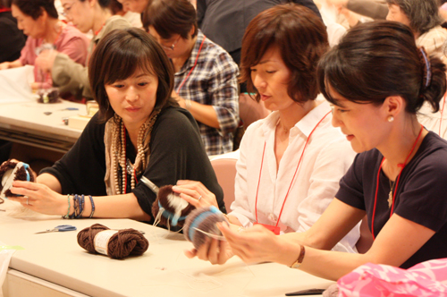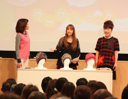 300名に近いお客様が、司会の中山エミリさん、吉井歌奈子さんと一日あみものを楽しまれました。300名のワークショップは壮観でしたよ♪