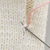 脇のとじ、肩のはぎ合わせ、袖つけの前に仮止めします。長くて針先が丸いあみもの専用の待針を使いましょう。