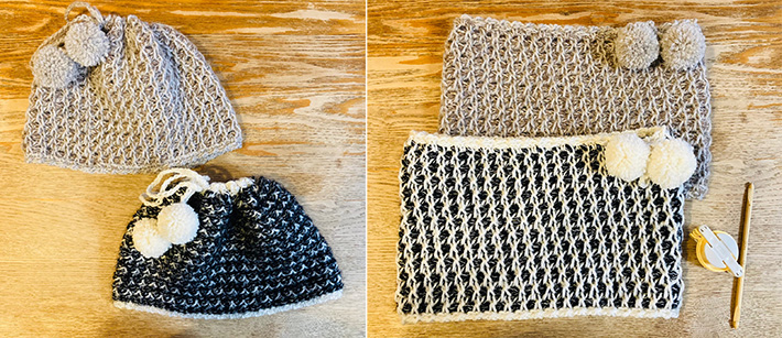 今回は帽子にもなるリバーシブルスヌードをご紹介します。