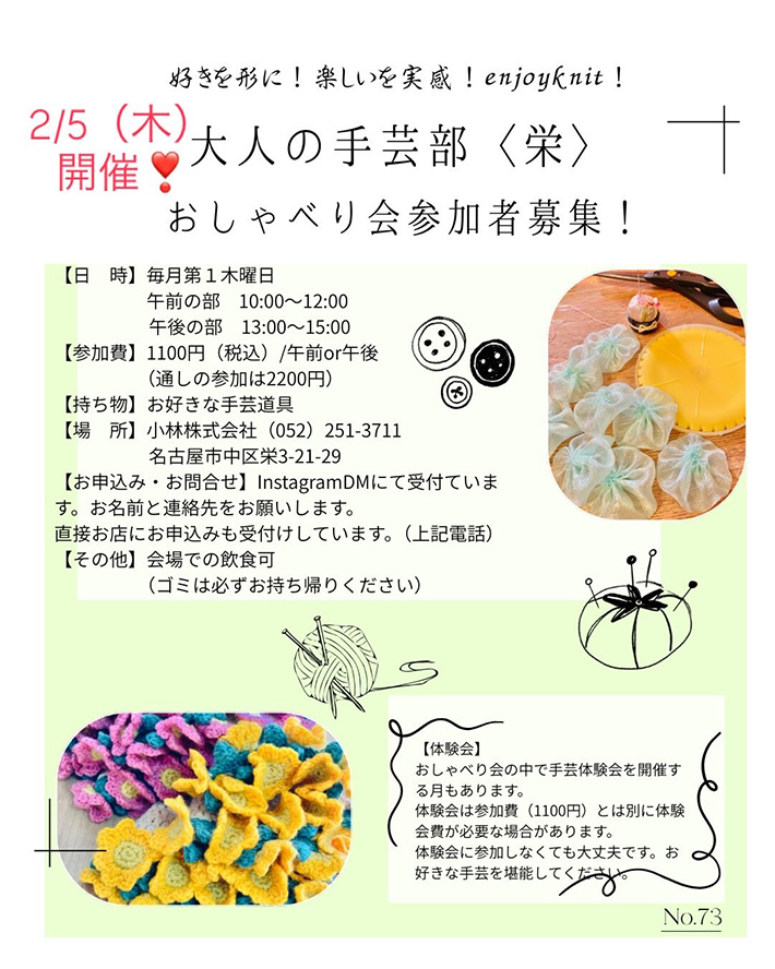 【午後の部】「手芸LABO栄」 13:00〜15:00