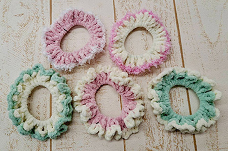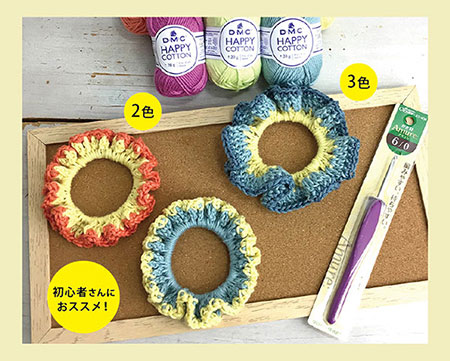 ●作品:「A.くさり編みのシンプルシュシュ」「長編みのシンプルシュシュ(経験者向け)