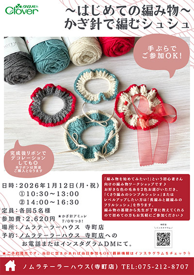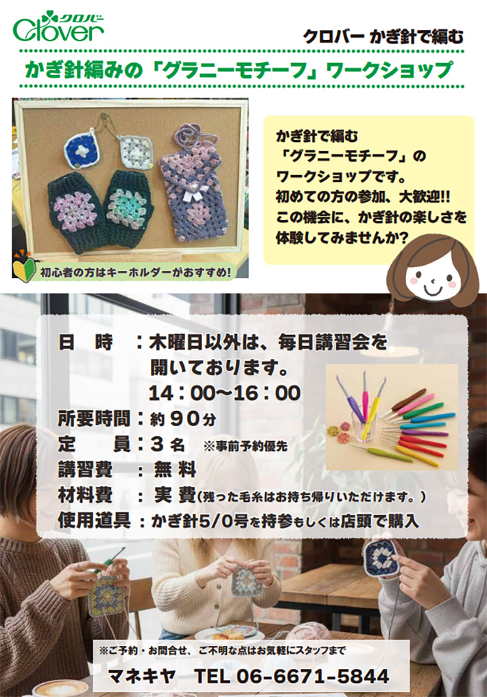 TOP/イベント&ワークショップ/ワークショップ/2025年/全国の手芸店で「かぎ針編み初心者さん向けワークショップ(シュシュ・グラニーモチーフetc.)」を開催します!