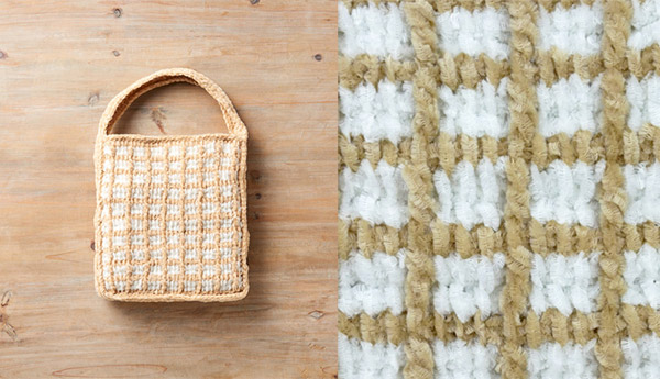 アフガン編みで編む、チェック柄の模様が可愛いワンハンドルバッグです。