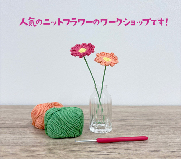 TOP/イベント&ワークショップ/ワークショップ/2026年/4/13 ナカノテツ小倉本店 かぎ針編みワークショップ「かぎ針編みのガーベラ」開催!(福岡)