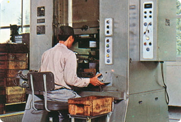 現本社所在地に鉄筋5階建工場竣工、自動ニッケルメッキ装置他の新鋭機械を多数導入し、量産体制を整備。
