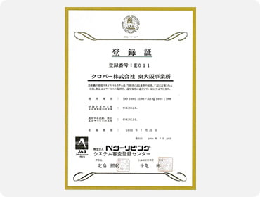 東大阪事業所(東大阪市吉田4丁目4番29号)にて環境マネジメントシステム国際規格ISO14001の認証を取得。