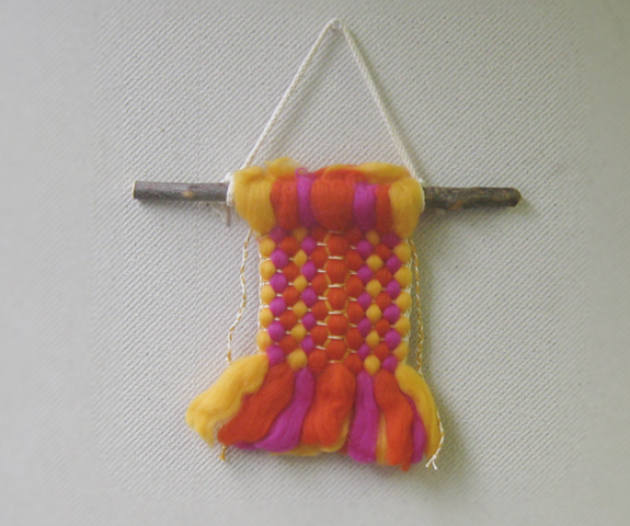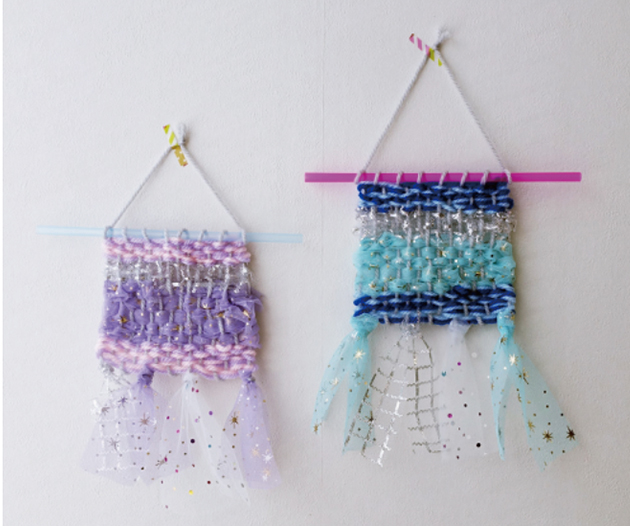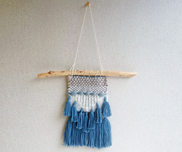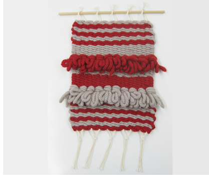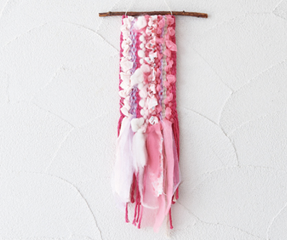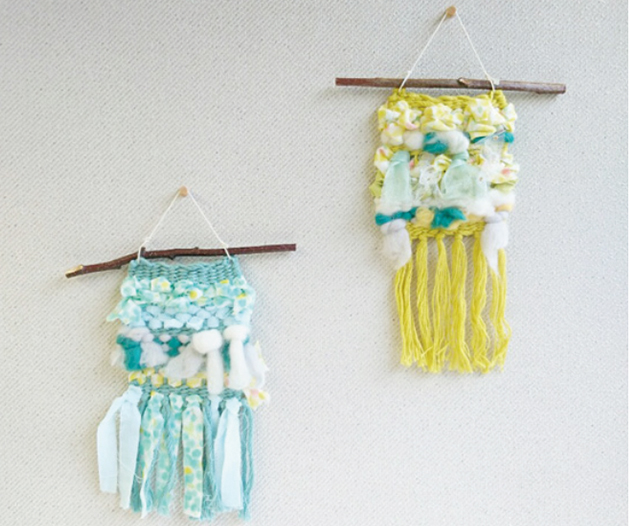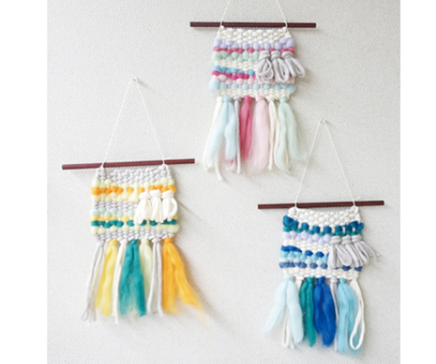 秋冬インテリアには手織りもおススメ♪クロバーミニ織りは、シンプルだけどワイドに使える小型織り機。ニットのタペストリーでお部屋もほっこりあたたかく。