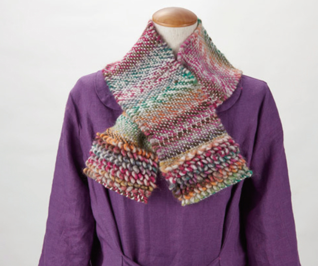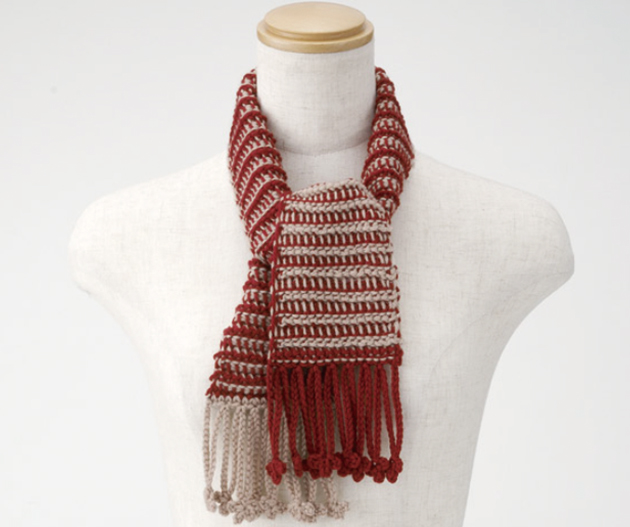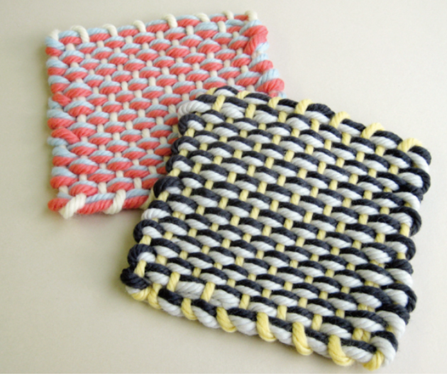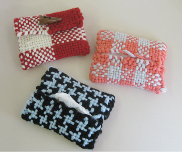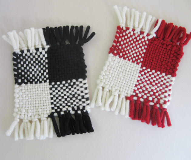 クロバーミニ織りは、千鳥格子などの織り地も楽しめます。コースターなどの小物や、つなげるとミニマフラーも!いろいろな作品ができますよ。