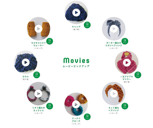 他にもジャンボ編みの作品がイロイロあります。8アイテムの編み方が、作り目からチェックできるムービーピックアップもあります。もっとJumbo Knit プロジェクトハローニットウェブをご覧ください。