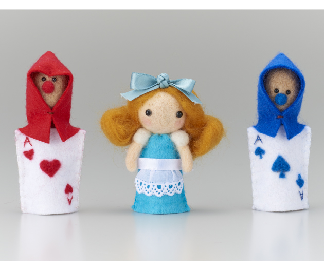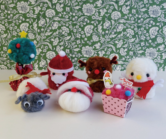 お部屋にクリスマス気分になるお人形を飾って、クリスマスを迎える準備をしましょう。あみぐるみ サンタさんは棒針で作る編みぐるみです。アリスの指人形はフェルトパンチャーを使ってちくちく作ります。オーナメントとしてツリーに飾っても!
