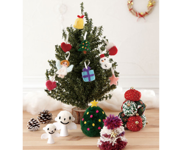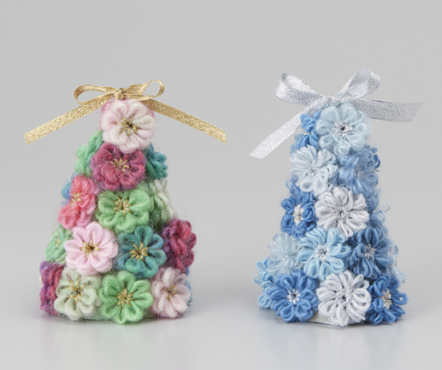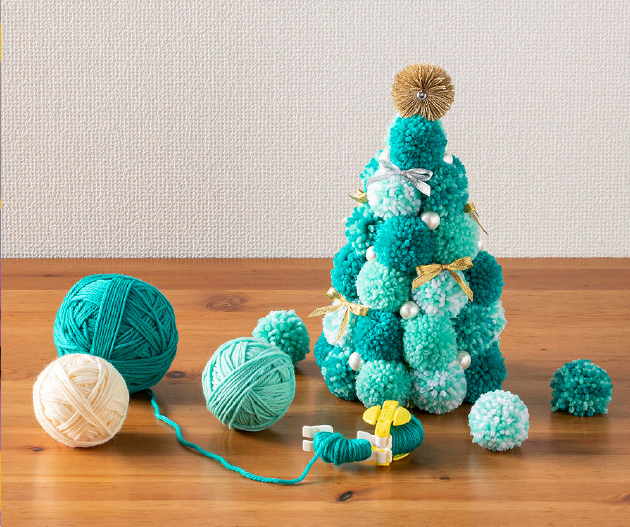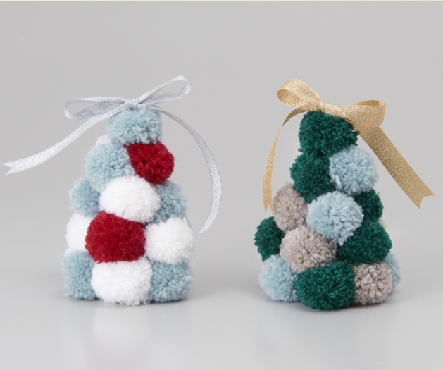 いろんなサイズのツリーが大集合!お部屋にツリーを飾りましょう。スーパーポンポンメーカーやちくちくヨーヨープレート、花あみルーム〈ミニ〉、つまみ細工プレートのクロバーの便利な手芸用品を使って完成させましょう♪はじめてさんもかんたん・きれいに作りやすいです。