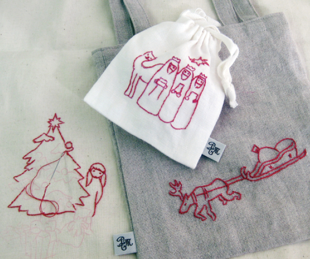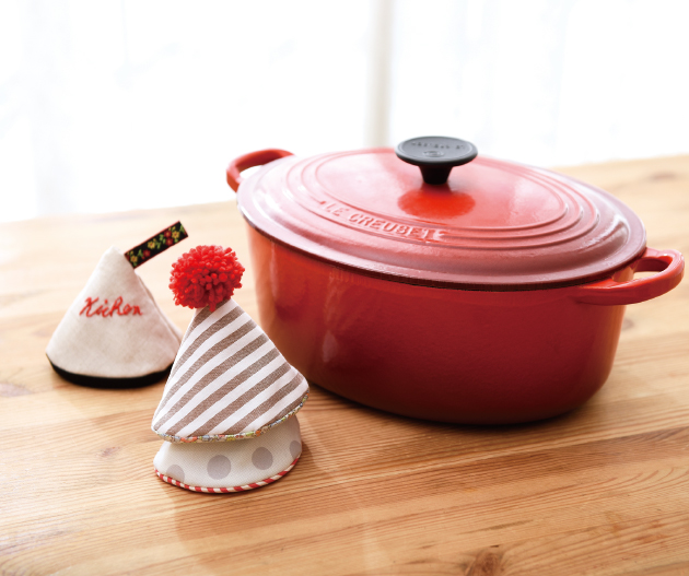 おうちクリスマスのディナーにあたたかなお鍋はいかが?クリスマスカラーの手縫いの鍋つかみでテーブルを楽しくしましょ。ぬい針「絆(きずな)」でおうち時間にちくちく作りませんか?