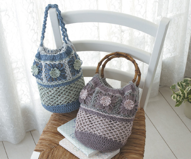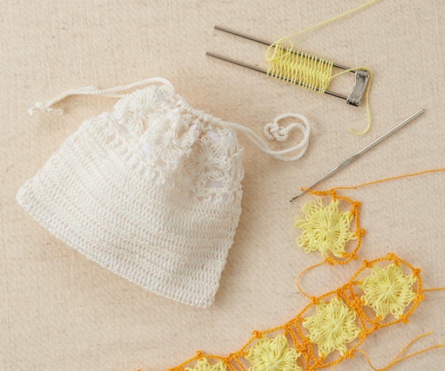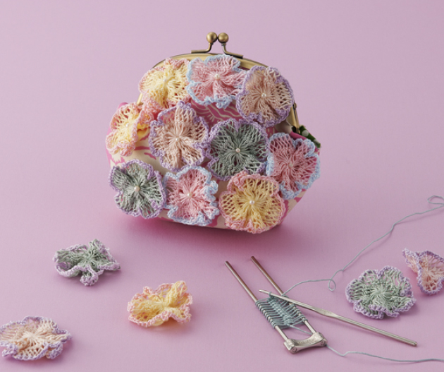 花あみルームは、いろいろな花モチーフがきれいに、簡単に作れます。六角枠1個、四角枠2個、丸枠3個が入っていて、枠のカタチや組み合わせ、素材を変えてバリエーション豊かな作品が楽しめます♪バッグにつけたり、アクセサリーにして春を先取りしましょ。