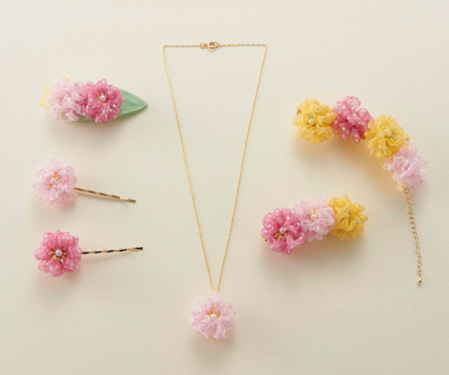 つまみ細工プレートで花びらを作ってたくさんお花を咲かせましょ。プレートの順番通りに縫うだけなので、はじめてさんもきれいに作れます。5種類・3サイズのプレートがあります。新学期や新年度に向けてお弁当袋の準備をしたり、春らしいアクセサリーを作ったりしてみませんか?