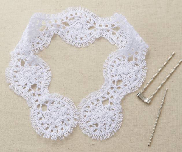 ヘアピンレース「ミニ」<2cm幅>はクラシックレースがやさしい技法で楽しめるツールです。商品に付属のレース針<0号>で2cm幅のブレードを作って、細編みやくさり編みでループに変化をつけ、繊細な作品が仕上がります。