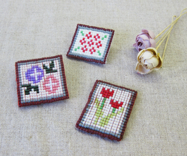 カード型ビーズ織り機は小さなモチーフ作りが簡単に楽しめます。小さな絵を描くように、たくさん作ってくださいね。