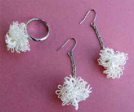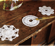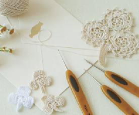 芯の糸をくるみながら編むので、しっかりした陰影のできるのが魅力のアイリッシュクロッシェレース。お花や蝶を立体的に編めます。中・上級者向けですがチャレンジしてみませんか?レース針「ペン-E」を使ってアクセサリーに仕立てましょう。