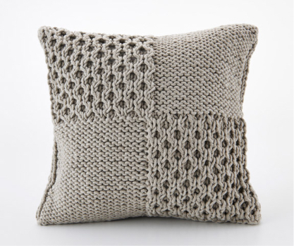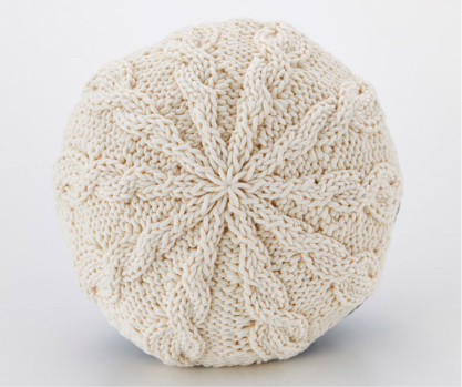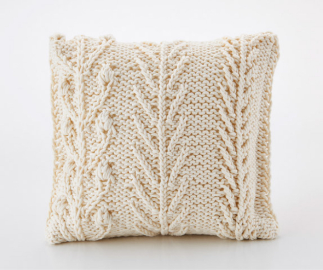 お揃いでコトネのニットクッション。アラン模様がきれいに出るのはコトネならでは。北欧っぽいインテリアにもぴったり。
