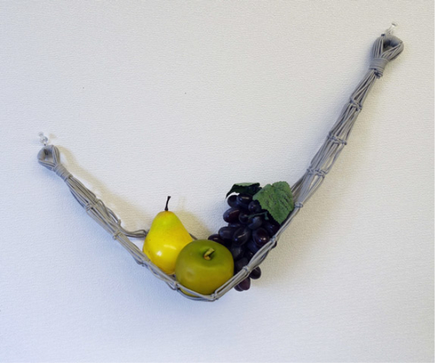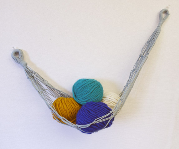 お部屋のいろいろをすっきりと。“プラントハンガーゲージで作るハンモックスタイルの雑貨ストッカー”は大小2タイプ。編みかけのニット作品やおやつなど、色々なものをおしゃれに収納しましょう。