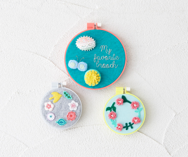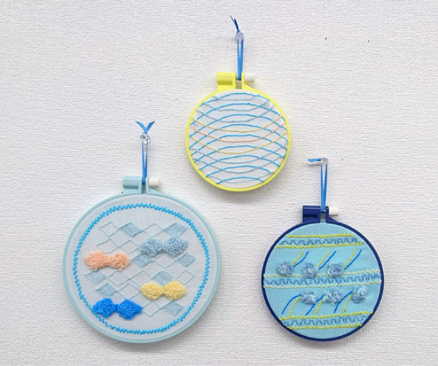 玄関やお部屋の壁に自分の好きな刺しゅうを飾ると元気がでますね。カラフル刺しゅう枠は、刺した刺しゅうを枠のまま飾ってカワイイ刺しゅう枠です。サイズは3種類、カラーは9色。作品やインテリアに合わせてサイズ・カラーが選べます。