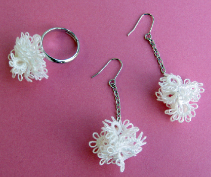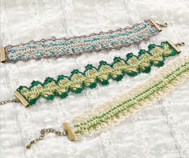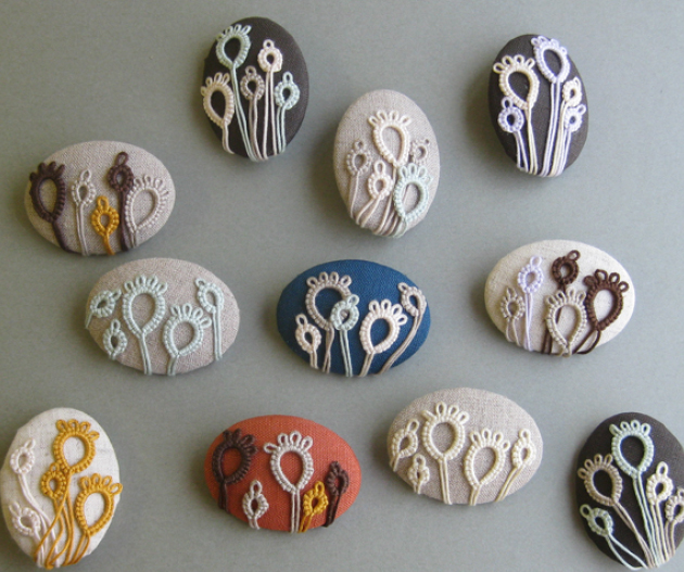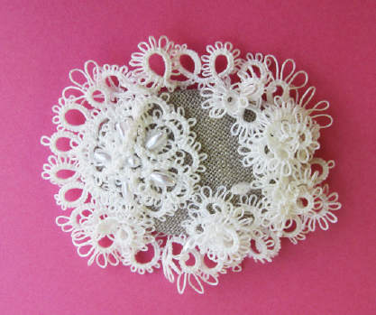 タティングレースで爽やかに!透け感があるので、いつもの装い又は浴衣に合わせても!タティングレースのムービー&タティングの練習用のブローチ作品もありますので、涼しいおうちでしっかりマスターできます。