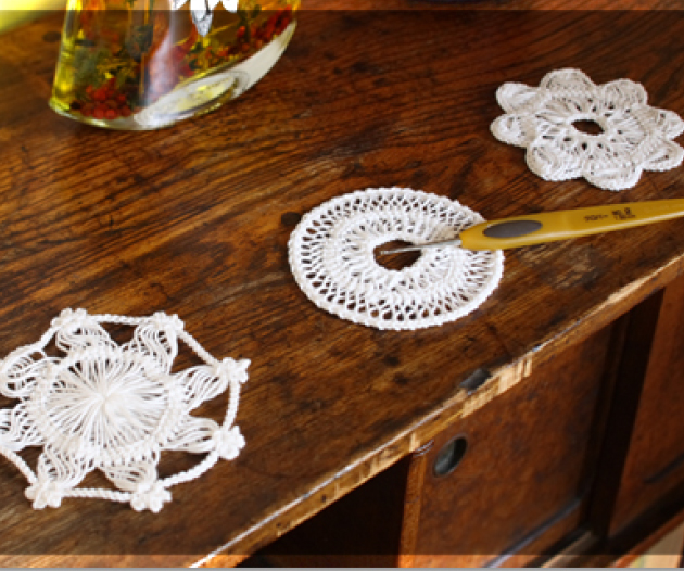 ヘアピンレース編み器で爽やかな小物も作れます。