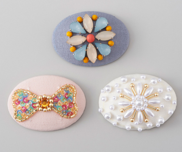 夏もビーズ刺しゅうでキラキラおしゃれ♪刺しゅうのがま口バッグは少し大きめの柄の布に自由にステッチします。柄の輪郭をアウトラインステッチしたり、ビーズやスパングルで華やかに。ビーズ刺しゅうのブローチも小さいサイズですので、気軽に挑戦してください。