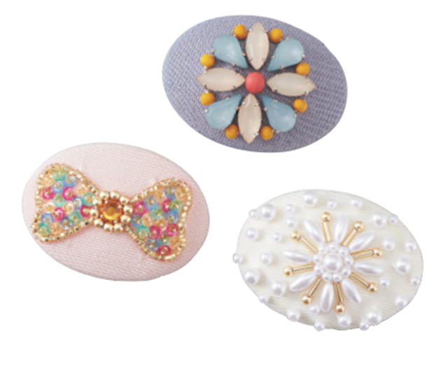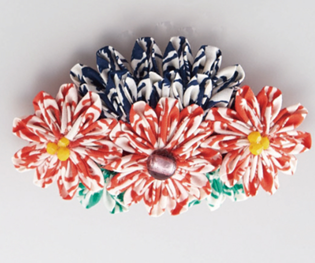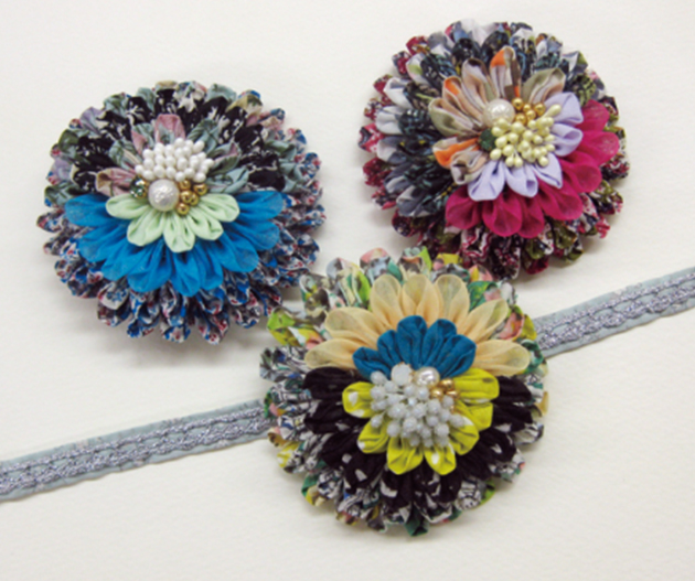 アクセサリーも浴衣に合わせて作りましょう。プレートの順番通りに縫うだけでつまみ細工風の花びらができるつまみ細工プレートが活躍!オーガンジーなどの透け感のある素材を使うと夏の涼しげなアクセサリーが完成。プレートは5種類、サイズはL、S、SSの3サイズです。花びらを重ねて楽しんでください。