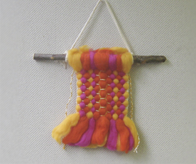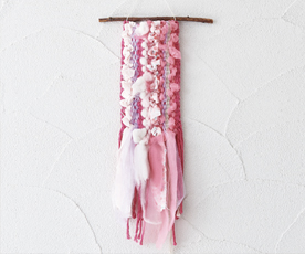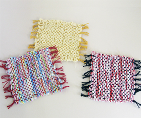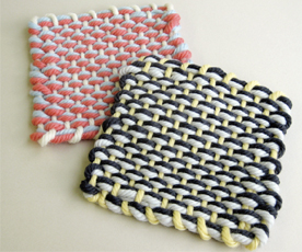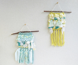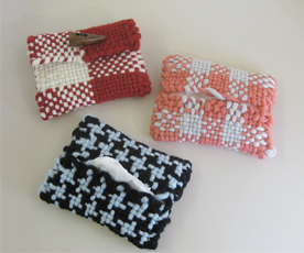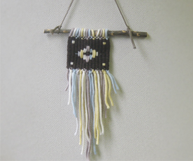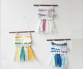 スクエアモチーフがかんたんに織れるクロバーミニ織り!使う素材・組み合わせで作品のバリエーションいろいろ。太めの糸を使うと早く仕上がりますよ。まずはフサが印象的で織り地がかわいいタペストリーを作ってお部屋に飾りましょ♪