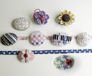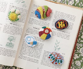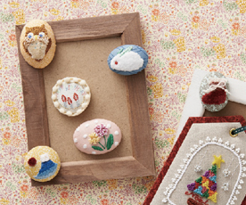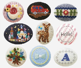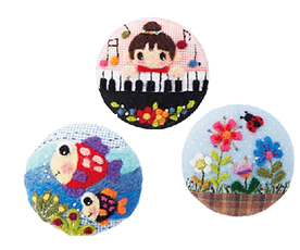くるみボタンは小さな刺繍やかわいい生地をブローチやヘアゴムにカンタンに仕立てられます。組み立ては指ではめ込むだけの道具いらず。小さな額に見立てて自分の「好き」を作品に仕上げましょう。