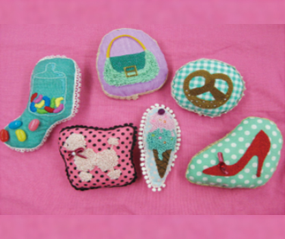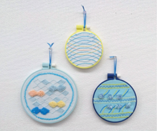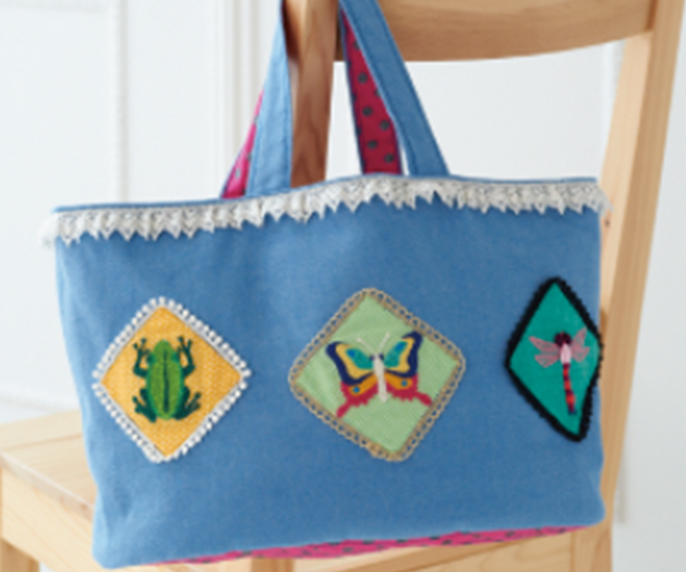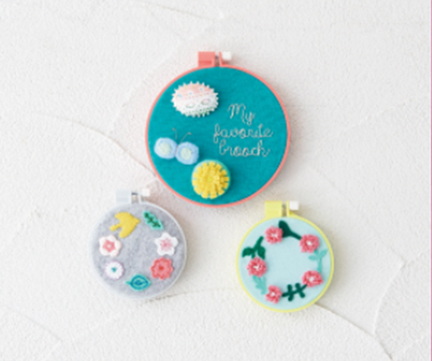 刺しゅうワッペンが楽しめるフリーステッチングニードル。片側からプチプチ刺して、絵を描くみたいにステッチができます。カラフル刺しゅう枠を使ってのホームデコやブローチ、刺しゅうバッグのレシピもあります。自分のマークをワッペンにしても楽しいですね!
