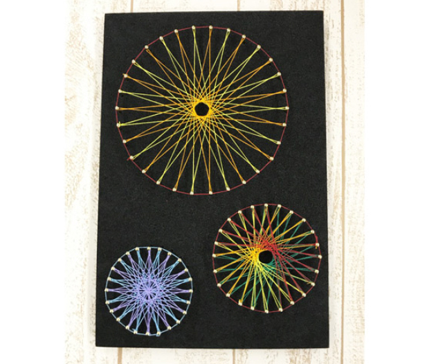 お好きなデザインが作れるのは、ストリングボード フリーデザイン。花火やサボテン、端午の節句「かぶと」などレシピもあります。オリジナルデザインで思い出をアートにしても。作品は付属のケースに入れて飾れます。