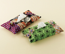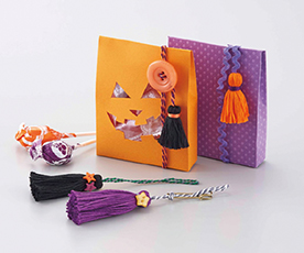 パーティは事前の準備が盛りあげるヒケツ!みんなで集まって手作りしましょう♪お菓子を食べて口元を汚した人には、ハロウィンティッシュボックスカバーに入ったティシュを差し出しましょう♪みんなでお揃いのロゼットを作ったり、お菓子のラッピングもお忘れなく!