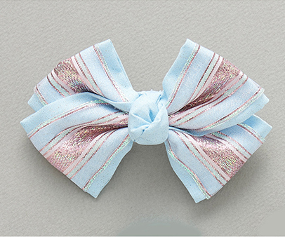 大きめのリボンのバレッタです。シフォン生地とコットン生地を重ねて作ります。