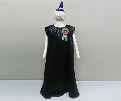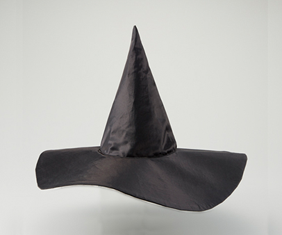 魔女のワンピースとコーディネイトできる魔法使いの帽子。手芸店で売っているサテン生地で作ります。