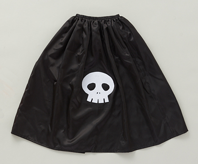 バックスタイルがドクロでカッコいい、スクエアマントです。手芸店で売っているサテン生地(黒/92cm幅 2m)で作りましょう♪縫う個所によっては「ほつれストップ液」を塗っても OKです!