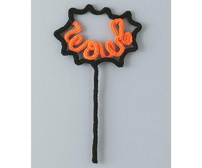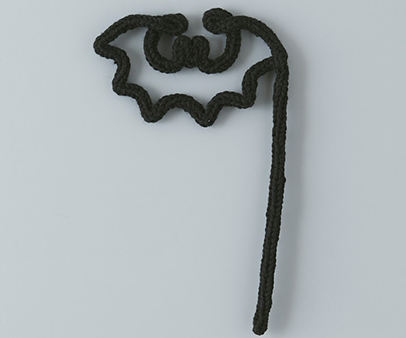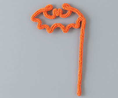 フォトプロップスは写真撮影の時に持つ小道具です。コウモリ2種と「WOW!」のフレーズを用意しました。毛糸と「ワンダーリリアン」で編んだリリアンの中にワイヤーを入れて形を作ります。フォトプロップスを持って、楽しい写真を撮影しましょう!ハロウィンを盛り上げてくれます。