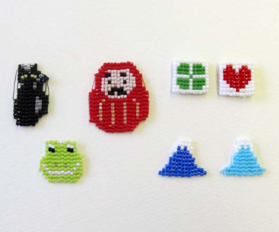 新生活はドキドキですね。うれしいことや楽しいことがたくさんあるように、カード型ビーズ織り機でお守りを作りましょう。ダルマ・ カエル・ 富士山・ 黒猫・ ハート・ クローバーのラッキーモチーフのレシピがあります。ラッキーカラーで作って幸運を呼び込みましょう。