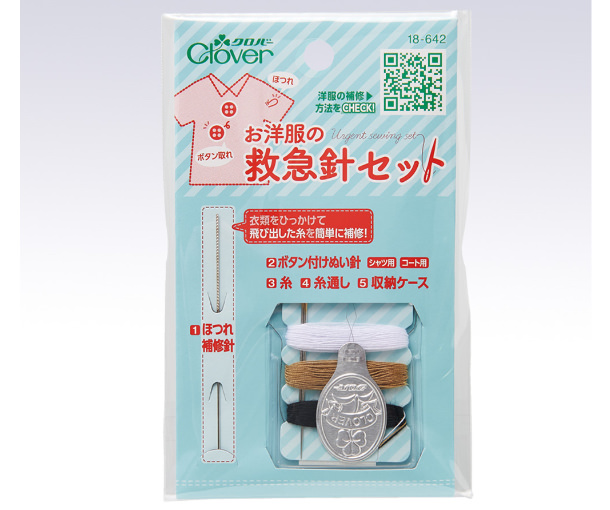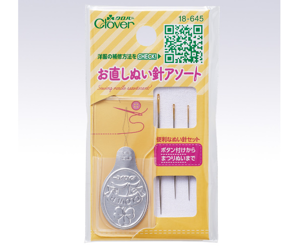 ボタン付けや衣類ほつれなどのお直しに便利な縫い針のシリーズです。手縫い初心者さんでボタンを付けたことのない方も、商品パッケージにあるQRコードから、ムービーや写真で「糸の通し方、糸の長さ、玉結び、玉どめ、ボタンのつけ方、布地のほつれ補修」などチェックできます。息子さんや娘さん、お孫さん、甥っ子姪っ子さんの新生活のお守りに「救急針」をプレゼントしませんか。新生活に裁縫箱まで準備できていなくても、これで応急処置は安心ですね。外出先でもお直しのお守りになってくれます。