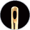 針穴(耳)の部分に純金メッキを施しました。これは、柔らかい金属という金の特徴を活かして糸のあたりをソフトにし、糸切れをしにくくするための工夫です。