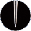 ニッケルメッキ後、クロバー独自の先付研磨(先直し)で、針先から0.5mmくらいの所を円すい状に研削し、尖った針先を強化。また、針先から針軸へゆるやかな曲線にすることによって布通りのよい針先にしています。