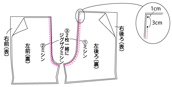 2 脇とまた下を縫う