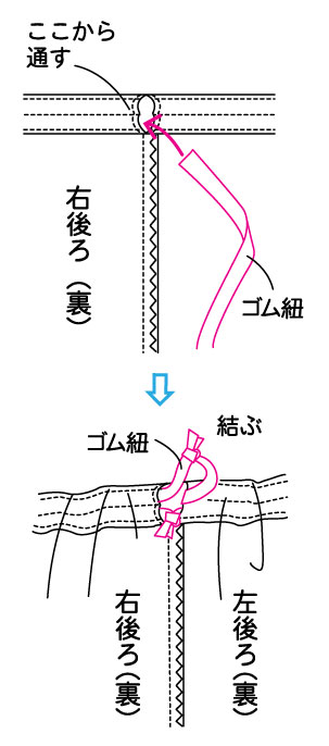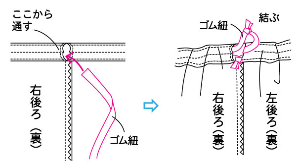 (ゴムの長さはウエストサイズに合わせて調整してください。)