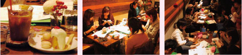 会社帰りのOLさんを中心にたくさんの方に参加いただきました。 初対面でもニットのお話で盛り上がる! 和気あいあいと秋の夜長を楽しんだカフェ・ド・フロールのニットカフェでした。
