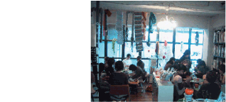 | (2005年11月7日〜13日に開催されたニットカフェです。現在は実施されていません。) 心斎橋周辺のカフェがクロバーとコラボ。期間限定でニットカフェに変身しました。 ニットの展示やワークショップなどのんびりやさしい雰囲気で たくさんの方に手あみを楽しんでいただきました。 ご参加いただいたみなさま、ありがとうございました。 |