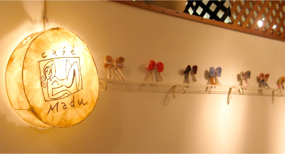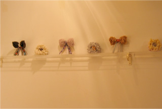 壁にはワークショップで作るリボンブローチの作品と萩原直美さん新作のコサージュが展示されました。