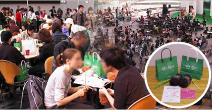 2005年10月15日、16日、東京六本木ヒルズアリーナにて、クロバー主催ニットアウトを開催いたしました。ニットカフェスタイルのワークショップでは、たくさんの方が手編みをたのしまれました。